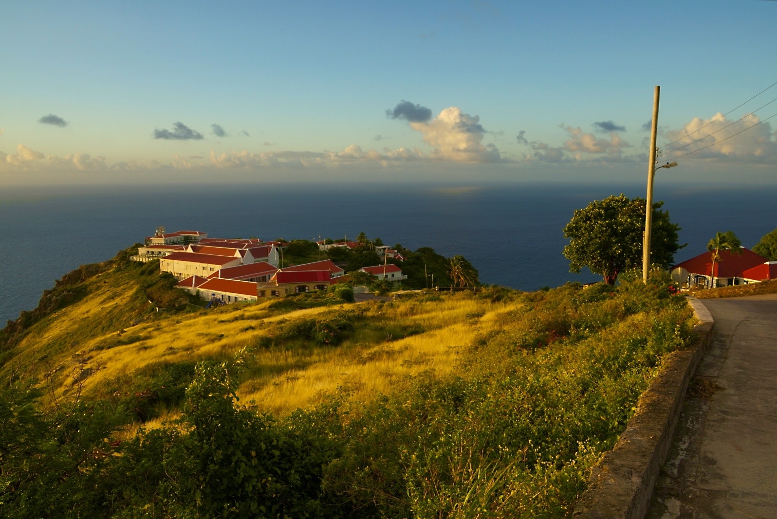 It’s been stormy for most of the past week; by Saba standards, that translates to gusty winds of 20-30 mph and cloudburst rains lasting 5-15 minutes swapping time with the sunshine through each day, all of it occurring within the temperate zone of 70-80 degrees Fahrenheit. This morning, a calm, beautiful sunrise that made the colors explode on St. John’s where I live. Here’s a couple of my favorites. Be sure and click on the photos to get the full size and scope of them!