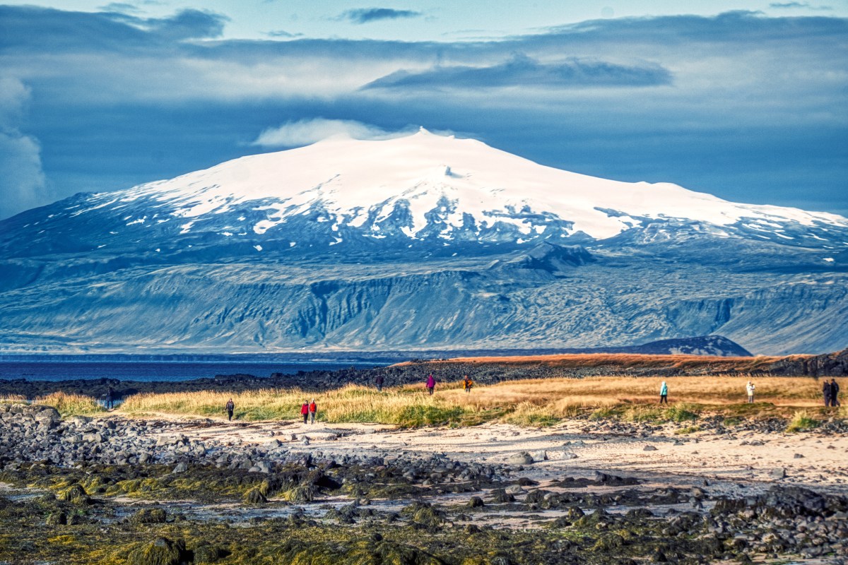 So this is where it ends. The minibus pulls to an open field of straw yellow encroaching upon shores strewn with ancient lava, and Snaefellsjokull volcano and glacier dominate the horizon. The turistas all run down the paths at it like some great white Pied Piper, as if they had a shot at reaching its foothills in the 35 minutes we were given.