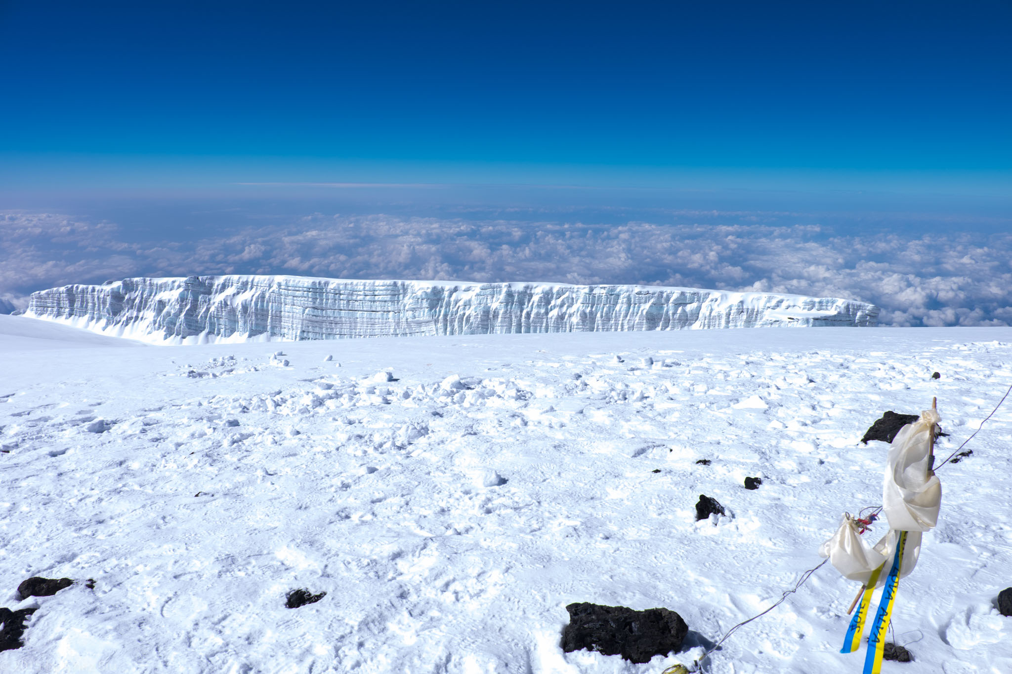 We got To Stella’s Point and Irina descended with Viviano to get her oxygen back. She’d made it to the crater rim – no mean feat. I was exhausted, but after talking to JT, he said if all I felt was tired, then we’d go Pole Pole to the summit (Uhuru Peak)…which we did. The crater rim was simply stunning, with cubic glaciers on the outside above the infinite clouds, and the giant bowl on the inside.