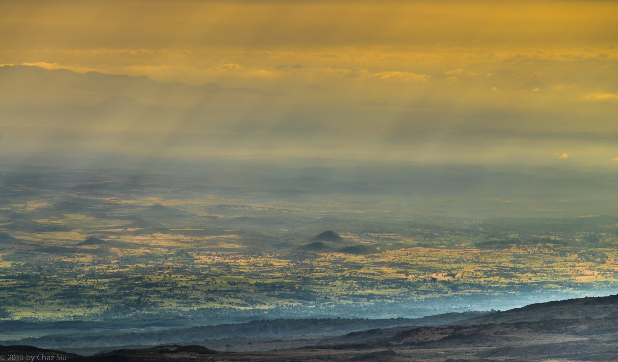 Buffalo Camp, situated above the Kenyan Plains, made for the best morning on Kilimanjaro so far, with unobstructed views of Kilimanjaro swathed in snow above us, orange African sunrise to the West, and grand views of the Kenyan landscape below, rolling hills dotted with trees. I spent two hours before everyone was up snapping the changing views as the sun rose.
