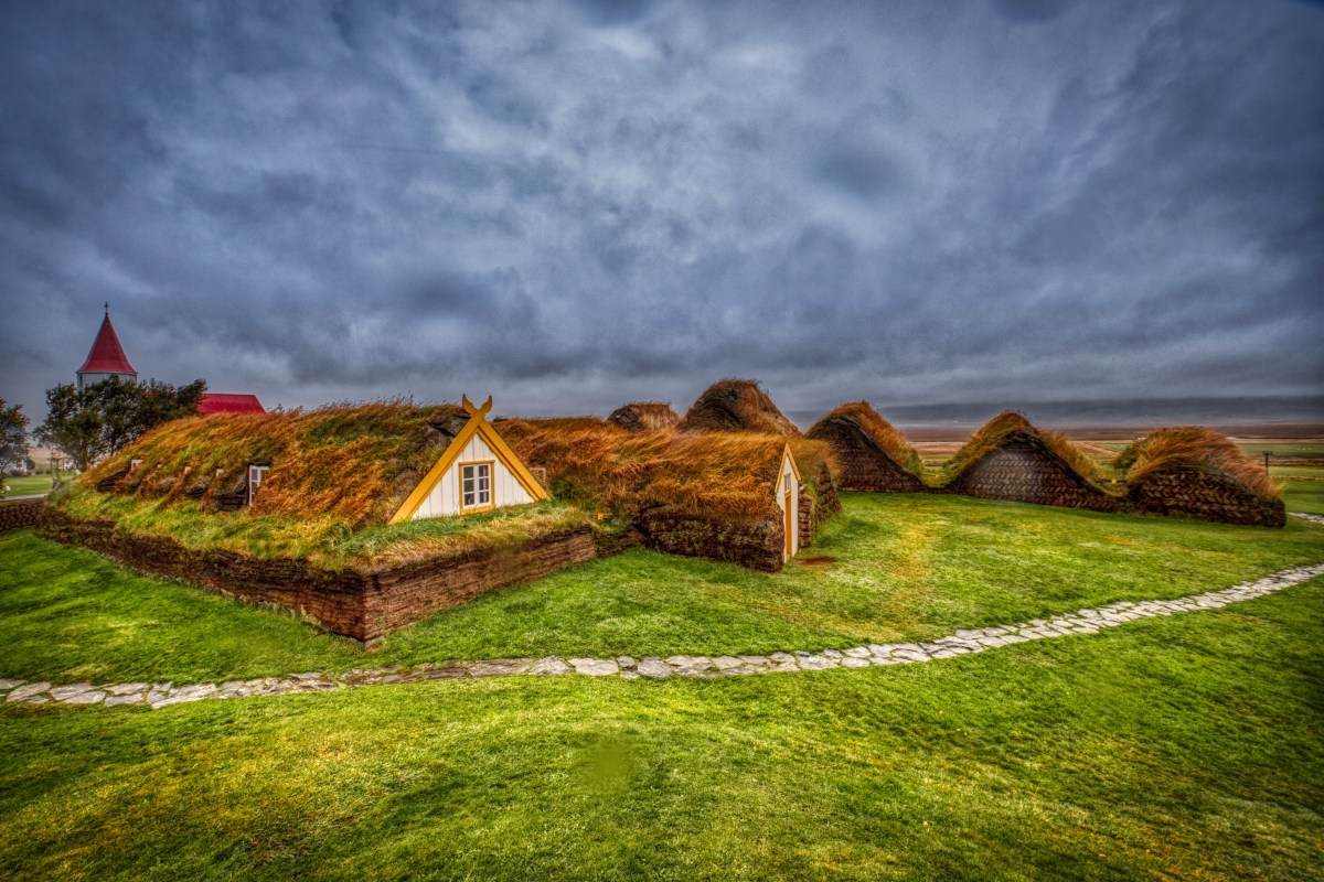 The north of Iceland is a moody, stormy show of Mother Nature’s irritable side. We clambered out of the tour mini-bus greeted with a sheet of rain that smashed our faces, sprinted past the church and into Glaumbær farm historic turf house, which although dank and musty inside, was surprisingly warm, cozy,and insulated …or maybe it was just the contrast of the weather outside. Two dozen turistas and unsmall me shuffling down hallways meant for one individual at most was an exercise in mild claustrophobia, but the preserved history inside the rooms was so tangible–the pottery, the looms, the skates, the cookware, the beds, the wooden ladders and beams, all shockingly roomy for a fully enclosed warren; a time machine visit to what it might have been like for 3 or 4 families to live in such a place dating from the settlement of Iceland in 870 to the mid-20th century. We stepped outside chattering about it…faceful of rain in the teeth again. Some things are constant here.