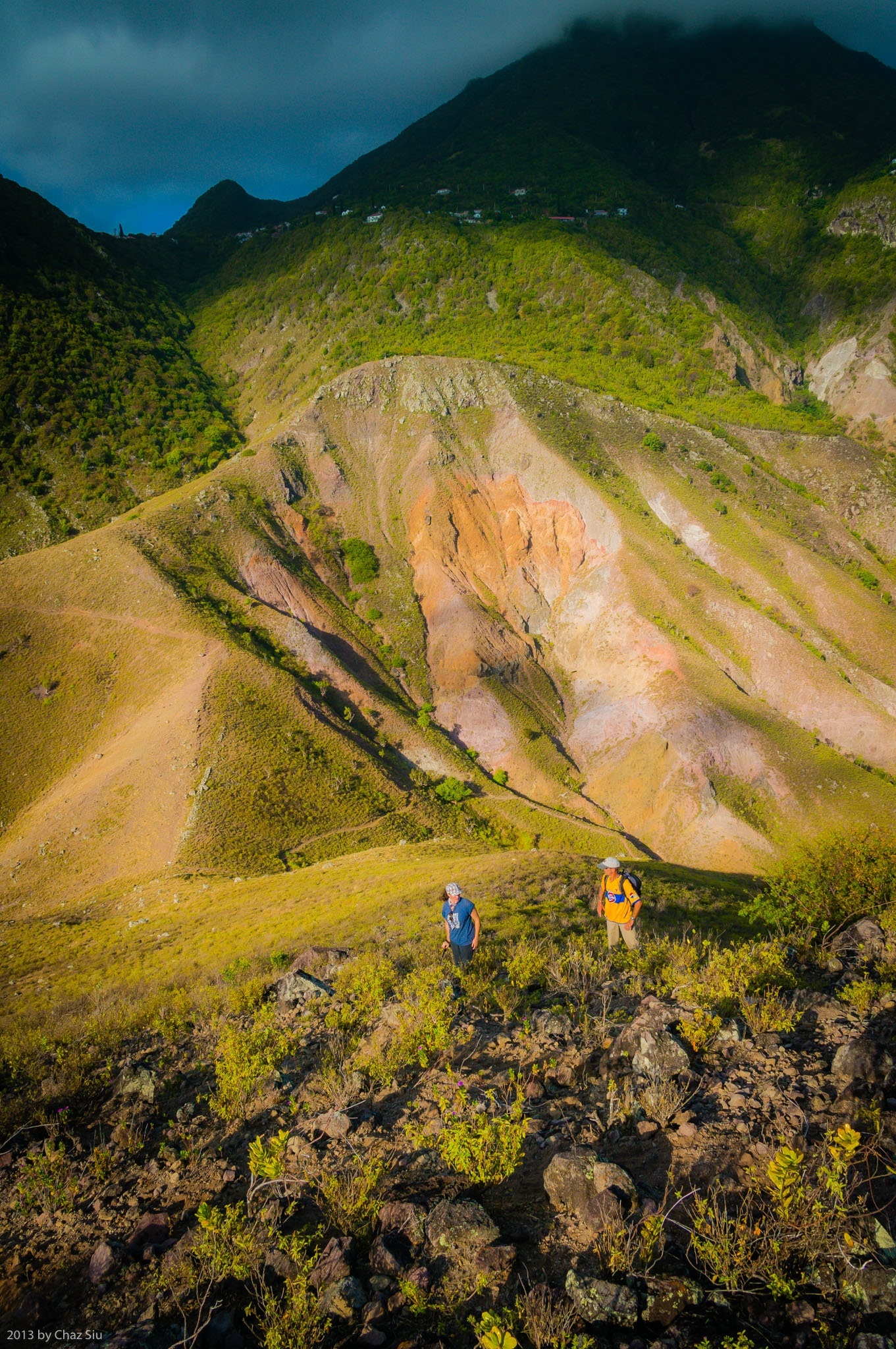 Generally speaking, for Saba jungle images I took while I was there, I have to reduce the saturation of the color green, because it’s so incredibly green on your way up, it tends to blow out your eyes ability to pick out detail. I let the green be in this picture, so you can really get a sense of the kinds of jungle flora around you, on trees, ferns, plants, and the man made volcanic stone walls that line some of the hike to Mt Scenery. It’s the most strenous official trail on Saba, and I summited ten times during my four months there. I always discovered something new and delightful.